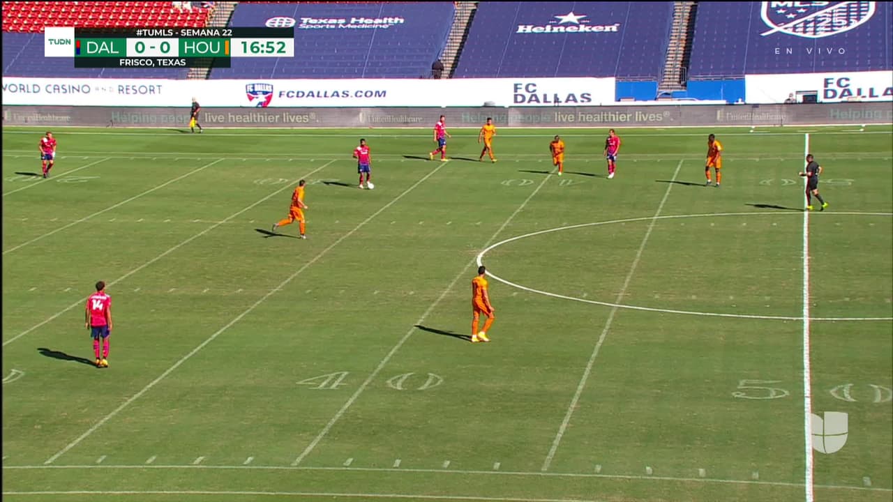 Tiro atajado raso al centro del arco. Franco Jara (FC Dallas) zurdazo desde el centro del área. Asistencia de Fabrice-Jean Picault.