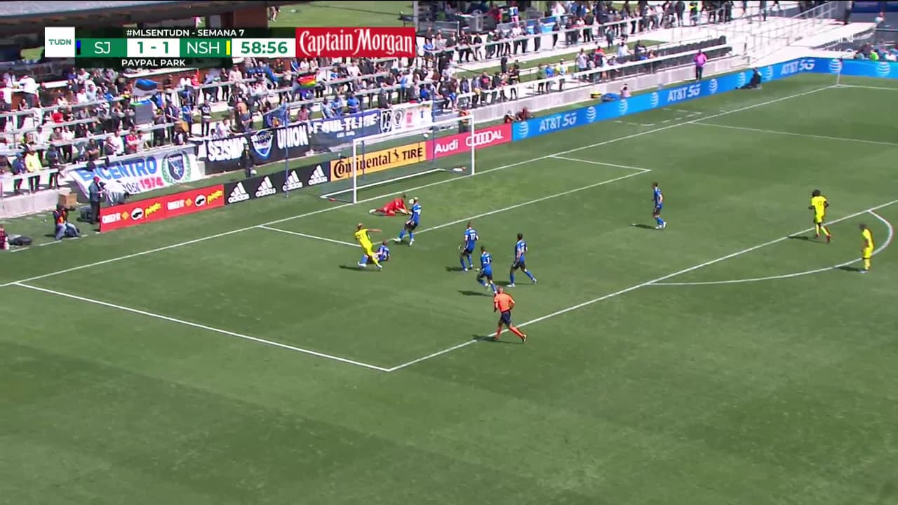 Tiro atajado. Hany Mukhtar (Nashville MLS) Disparo con la derecha desde el lado izquierdo dentro del área.