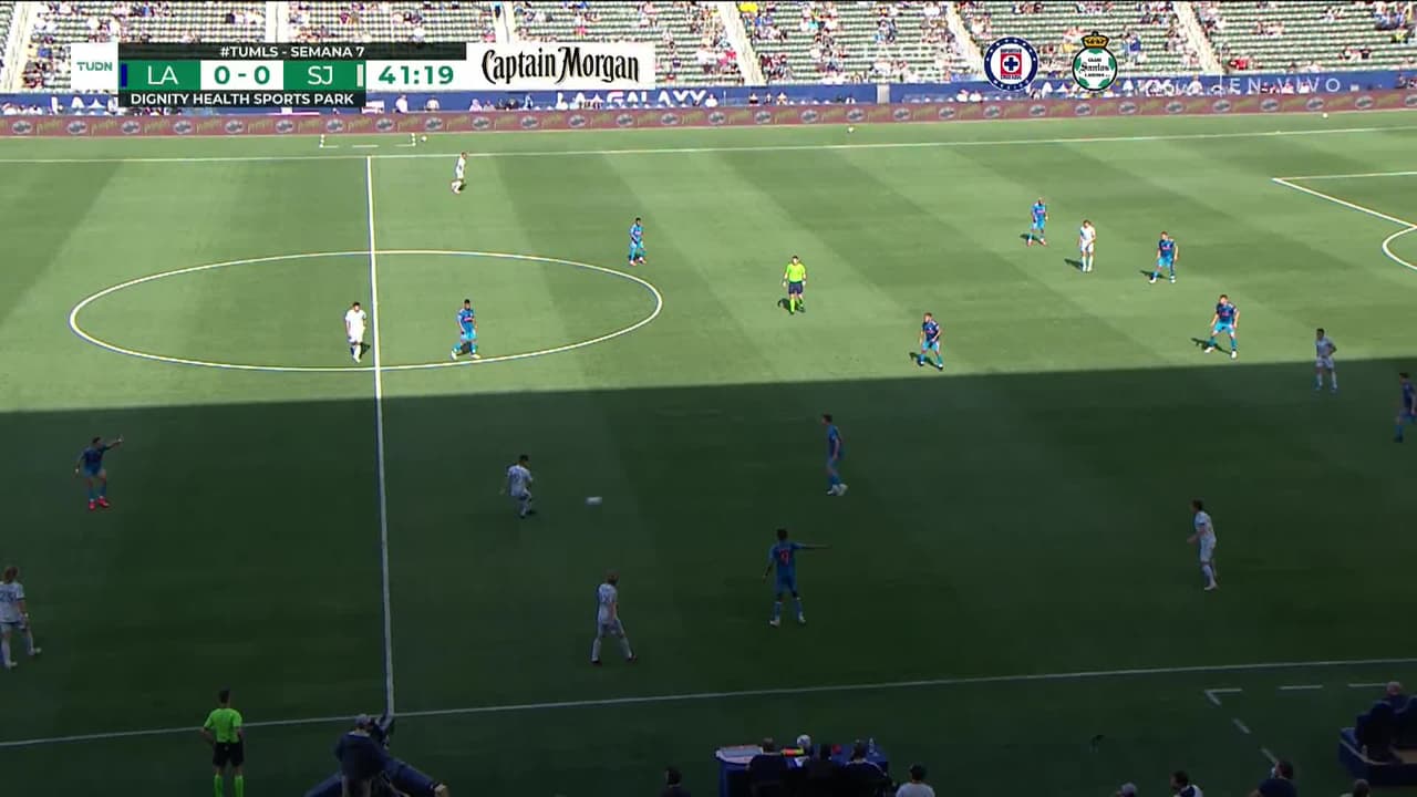 Tiro atajado. Chicharito (LA Galaxy) zurdazo desde fuera del área.