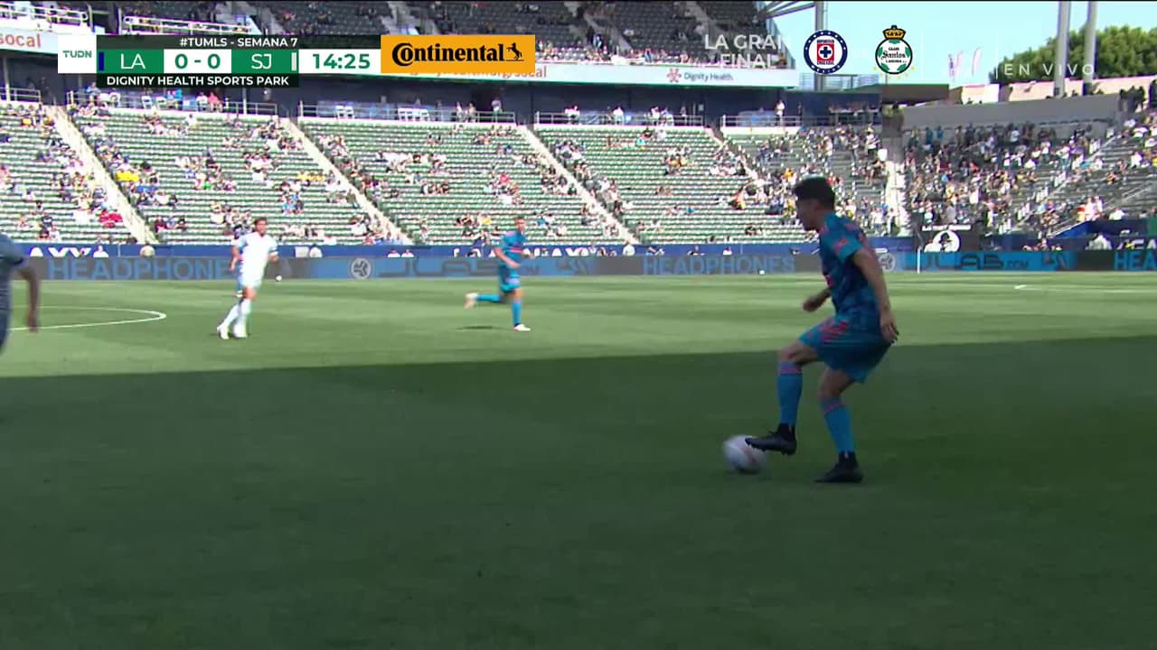 Tiro atajado raso al centro del arco. Javier López (SJ Earthquakes) zurdazo desde fuera del área. Asistencia de Cristian Espinoza.