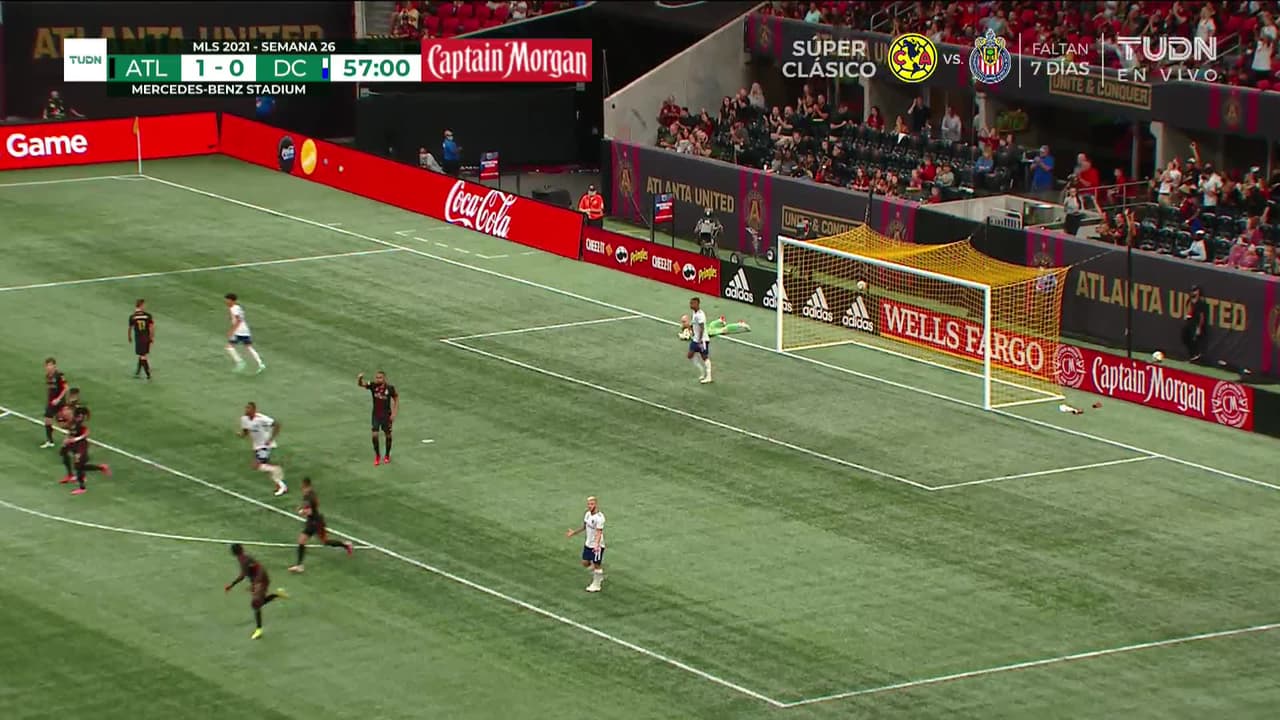 Tiro atajado al ángulo superior derecho. Julian Gressel (D.C. United) Disparo con la derecha desde fuera del área.