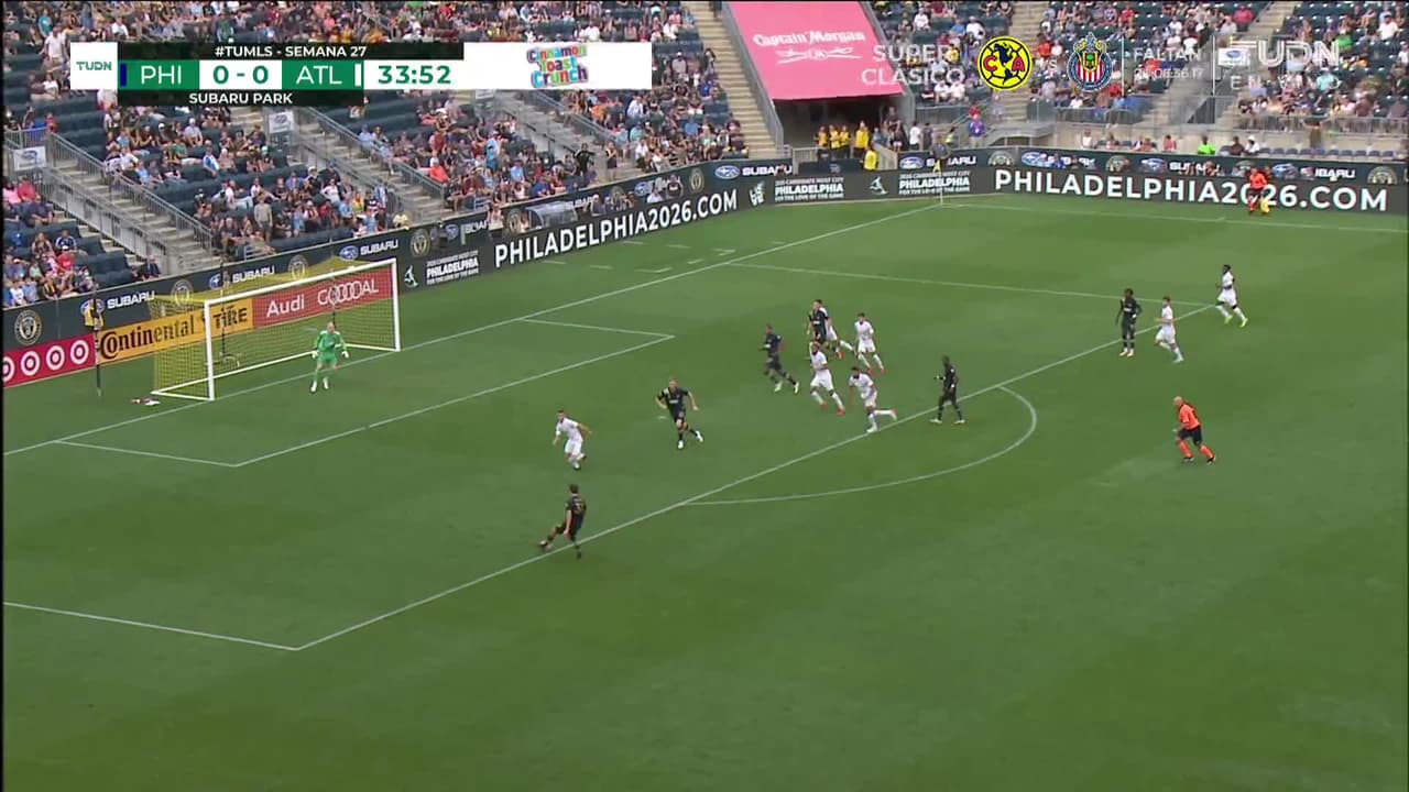 Remate parado junto al lado derecho de la portería. Kai Wagner (Philadelphia Union) remate con la izquierda desde fuera del área.