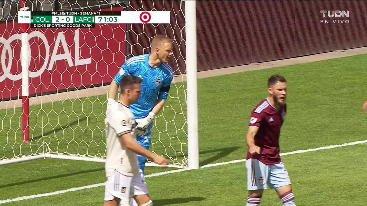 Tiro atajado Por arriba en el centro del arco. Kwadwo Opoku (Los Angeles Football Club) zurdazo desde fuera del área. Asistencia de Cristian Arango.