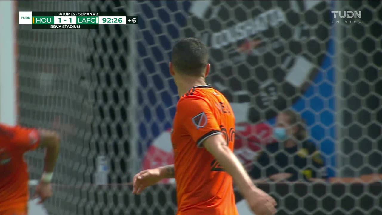Tiro atajado al ángulo superior derecho. Matías Vera (Houston Dynamo) Disparo con la derecha desde fuera del área.
