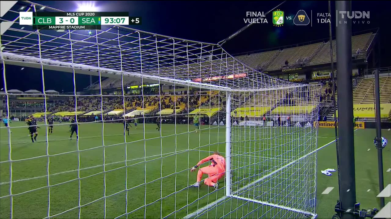 Tiro atajado por abajo a la izquierda. Raúl Ruidíaz (Seattle Sounders FC) Disparo con la derecha desde fuera del área. Asistencia de Will Bruin.