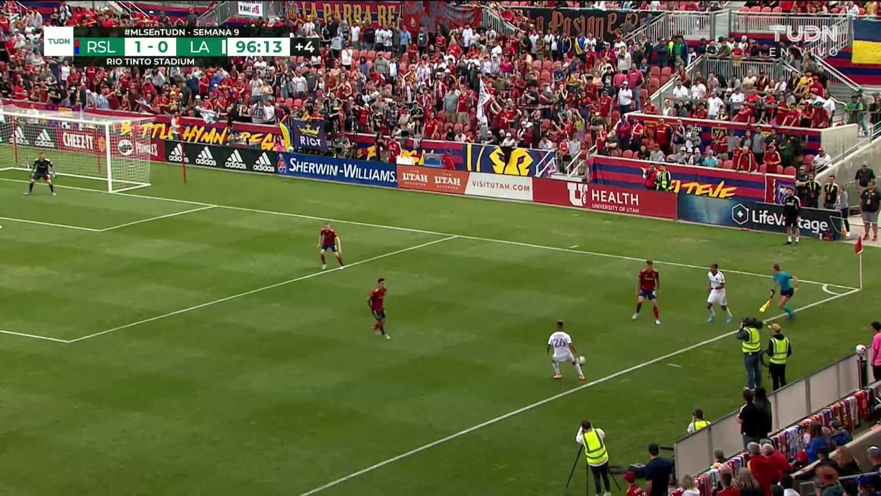 Tiro atajado junto al lado derecho de la portería. Samuel Grandsir (LA Galaxy) Disparo con la derecha desde el lado izquierdo dentro del área.