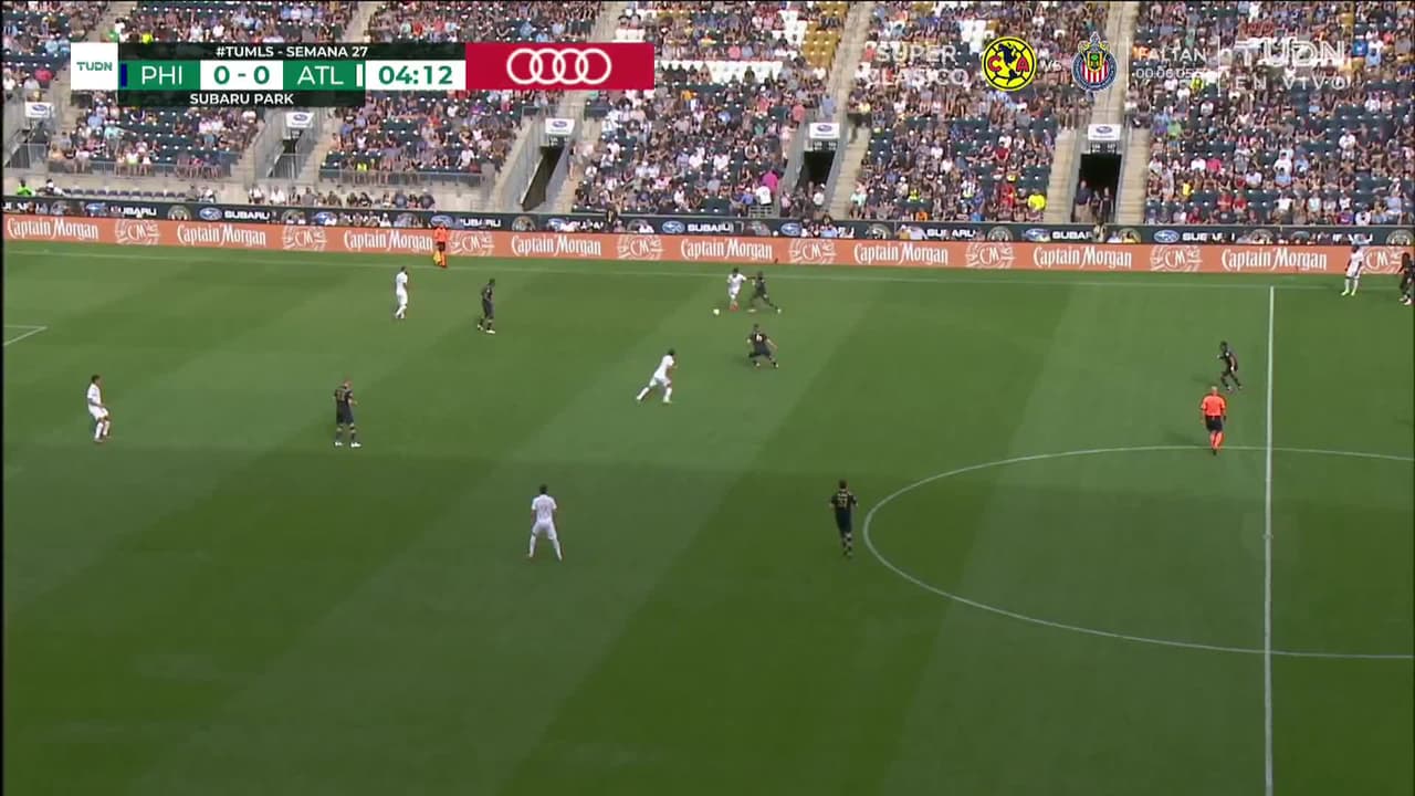 Tiro atajado. Sergio Santos (Philadelphia Union) zurdazo desde el centro del área.