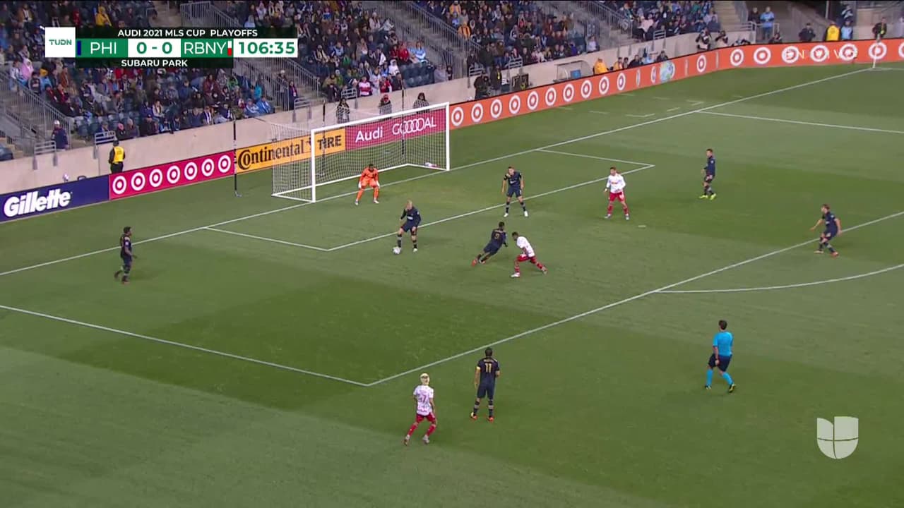 Tiro atajado raso al centro del arco. Sergio Santos (Philadelphia Union) zurdazo desde el centro del área. Asistencia de Cory Burke.