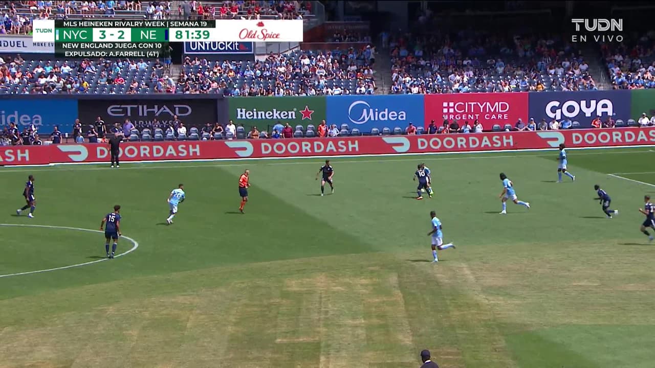 Tiro atajado. Thiago Andrade (New York City FC) Disparo con la derecha desde fuera del área.