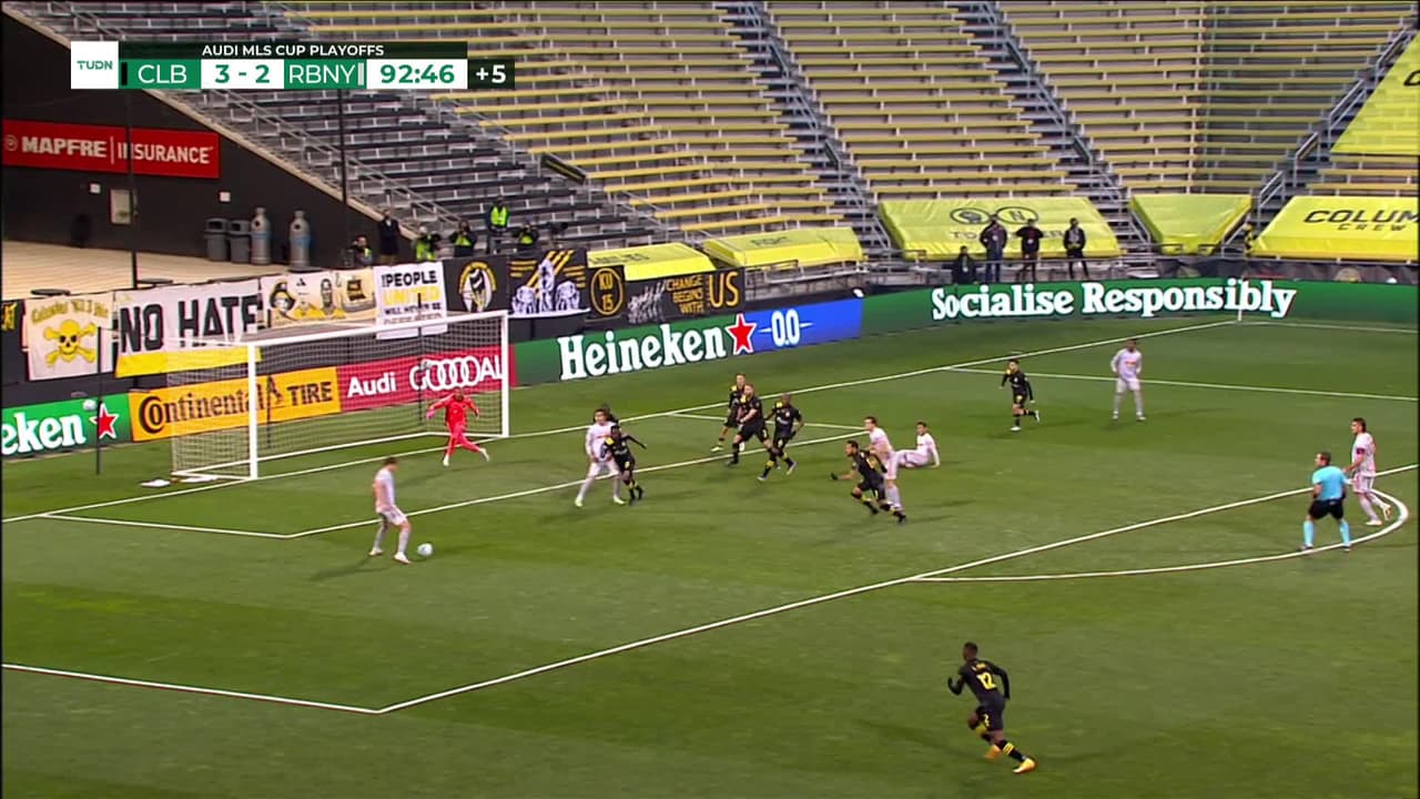 Tiro atajado por abajo a la izquierda. Tom Barlow (New York Red Bulls) Disparo con la derecha desde el lado izquierdo dentro del área.