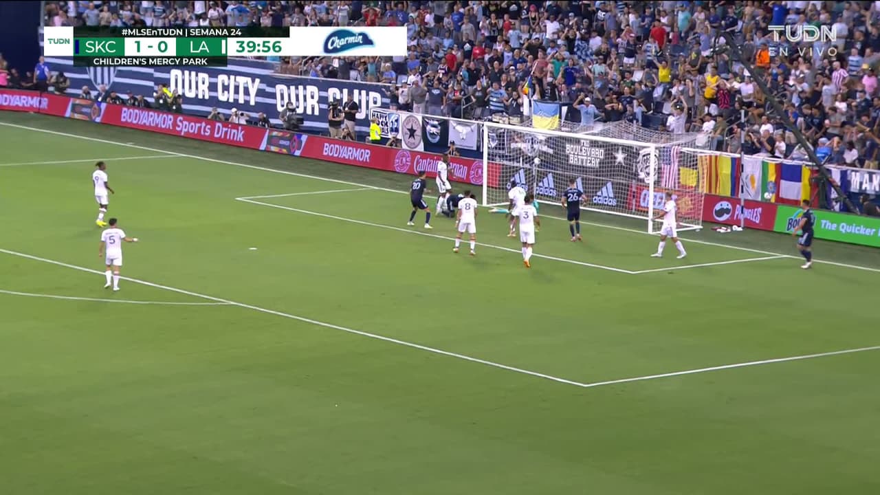 Tiro atajado. William Agada (Sporting Kansas City) Disparo con la derecha desde el centro del área.