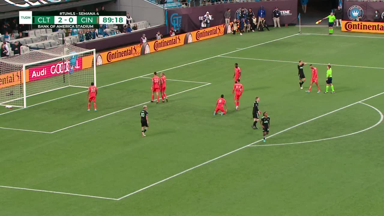 Tiro atajado Por arriba en el centro del arco. Yordy Reyna (Charlotte FC) zurdazo desde el centro del área.
