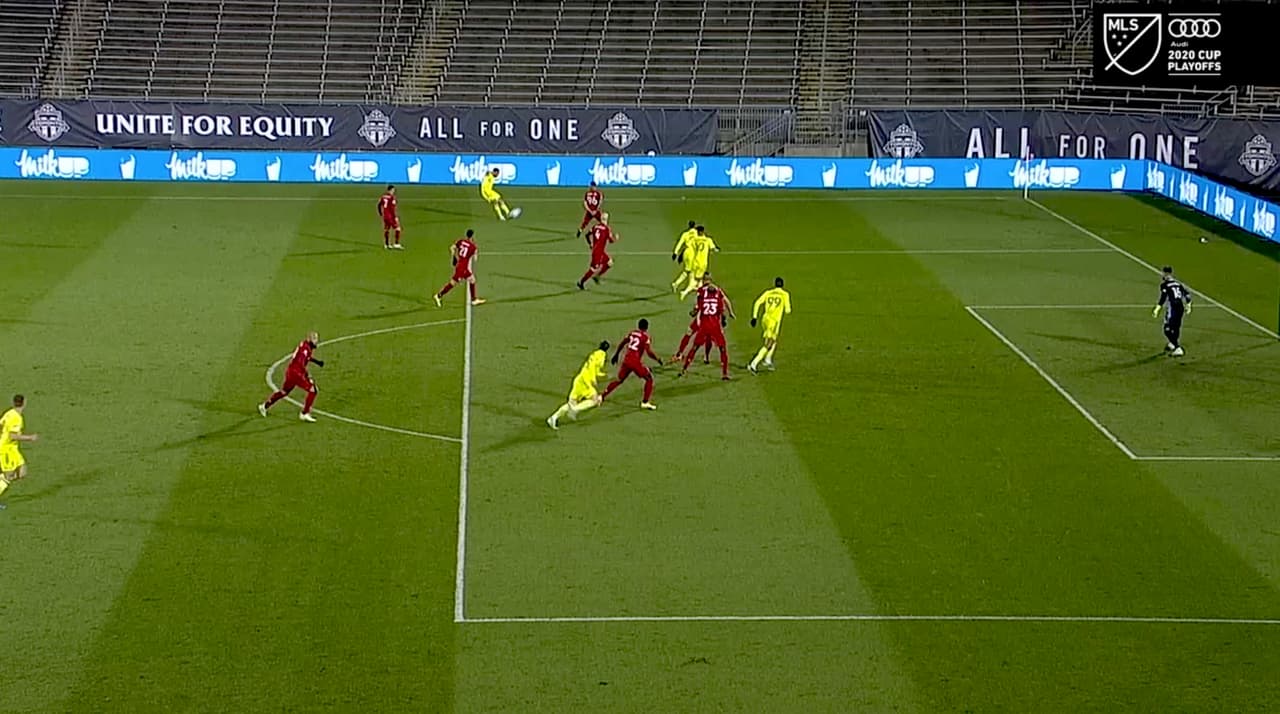 El delantero de Nashville SC, Jhonder Cádiz, perforó la portería de Toronto FC con un letal cabezazo, pero su anotación fue anulada por fuera de lugar.