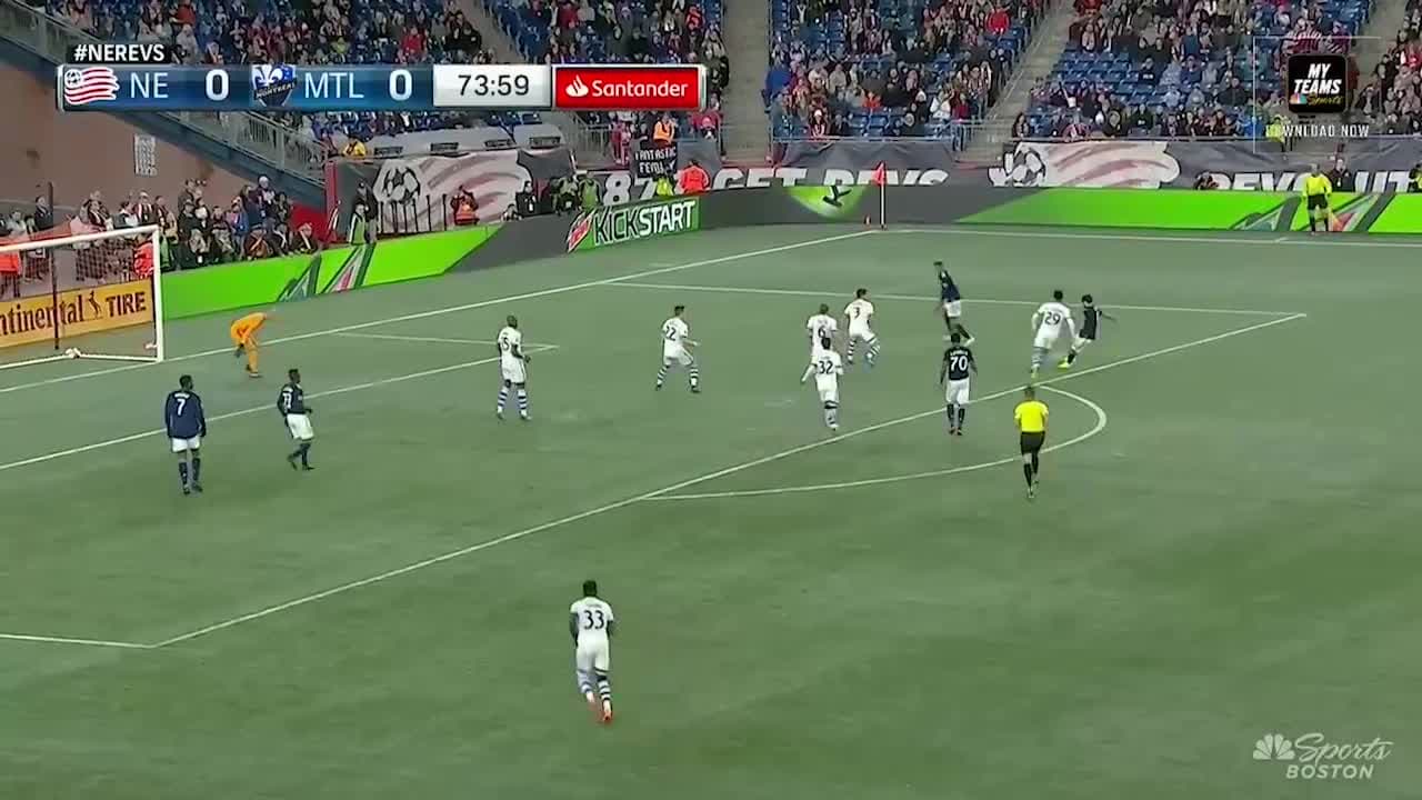 Con un potente remate de pierna derecha dentro del área, el mediocampista sudamericano abre la cuenta para el 'Revolution' con el 1-0 sobre los canadienses