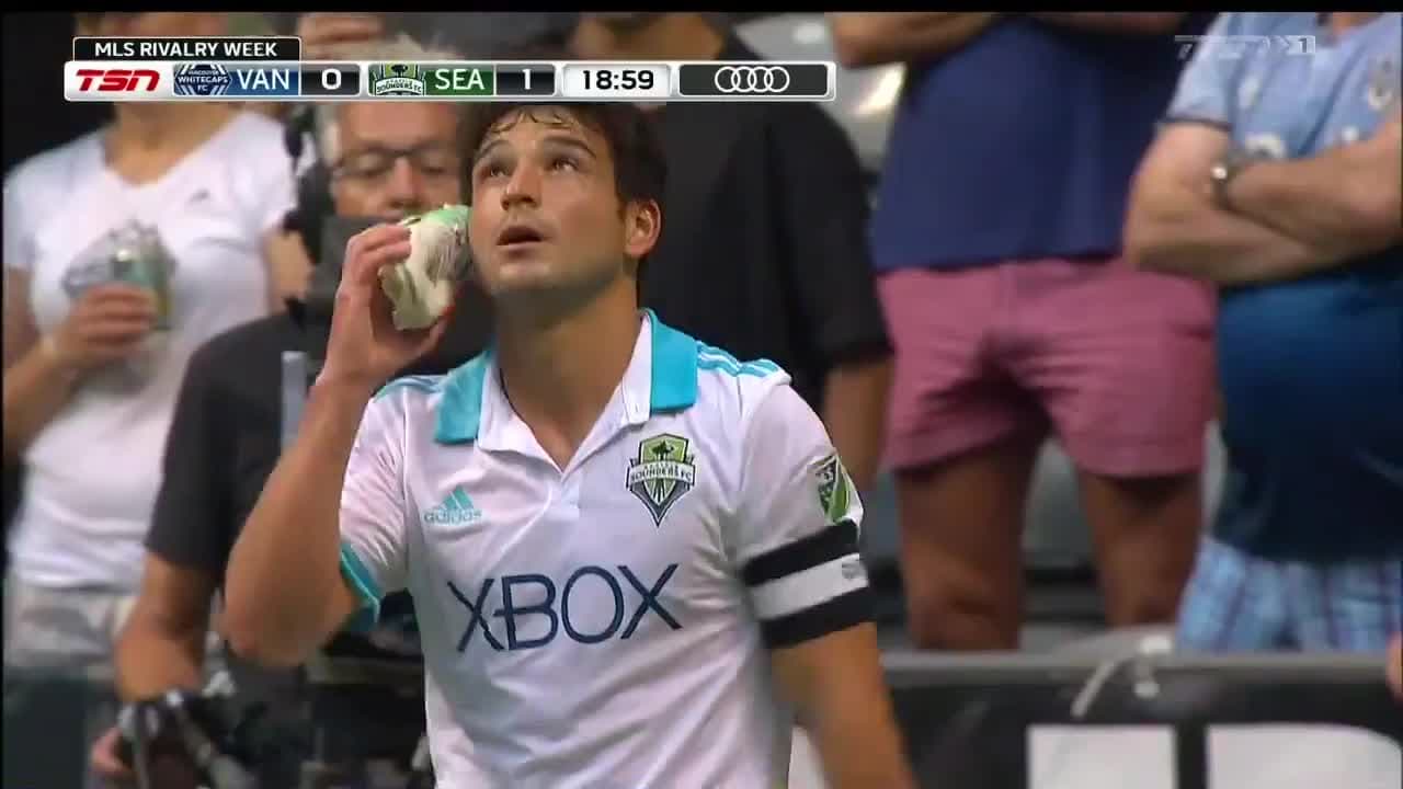 El mediocampista internacional cobra efectivamente un tiro penal y consigue el 1-0 para los Sounders, en su visita a los Vancouver Whitecaps.