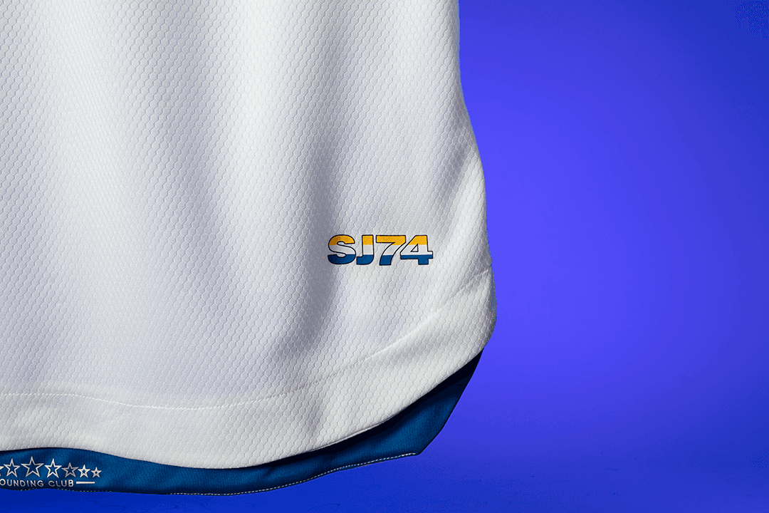 El diseño de esta camiseta alternativa se inspira en los colores blanco, azul y amarillo de la bandera de la ciudad del Área de la Bahía, en California.