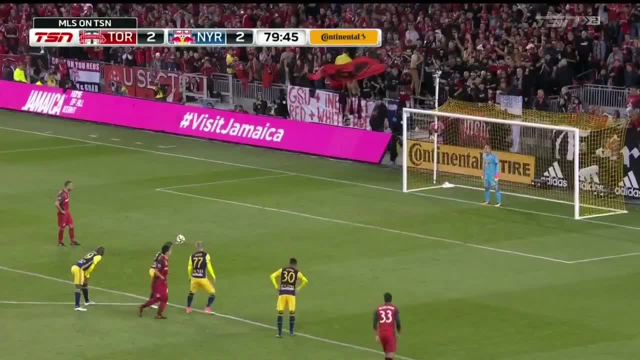 Minutos después que los Red Bulls igualaran el marcador, el español recupera la ventaja para el representativo canadiense, al convertir el tiro penal.