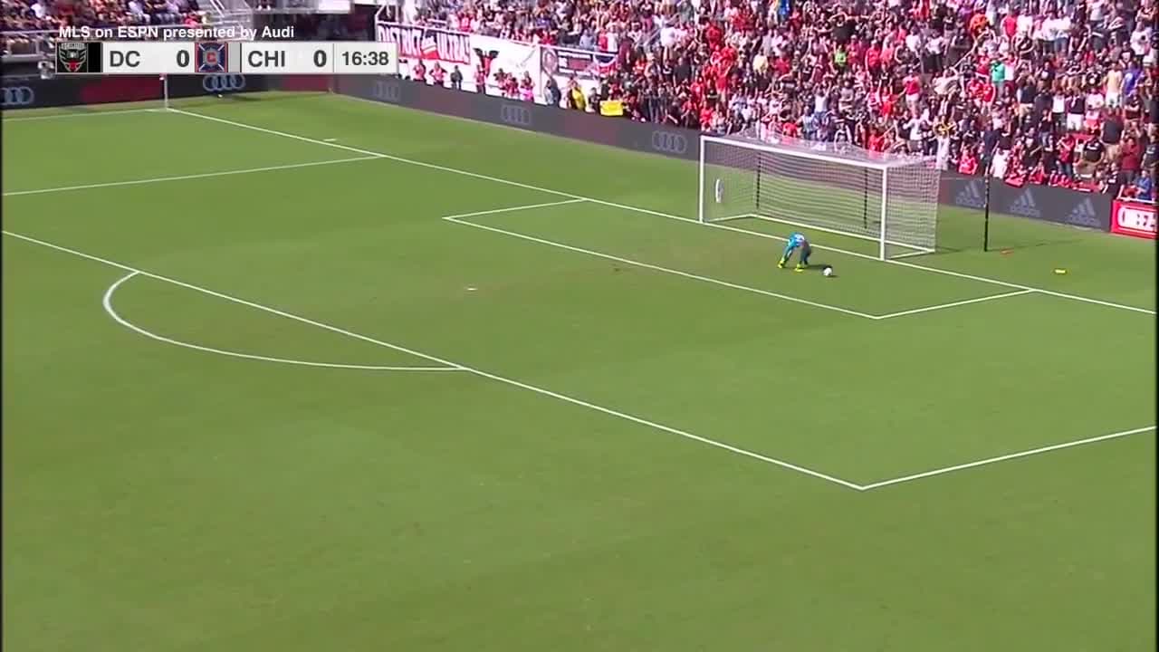 El inglés Wayne Rooney disparó desde media cancha, pero le faltó fuerza a su remate y el portero Stefan Cleveland terminó quedándose con el esférico.
