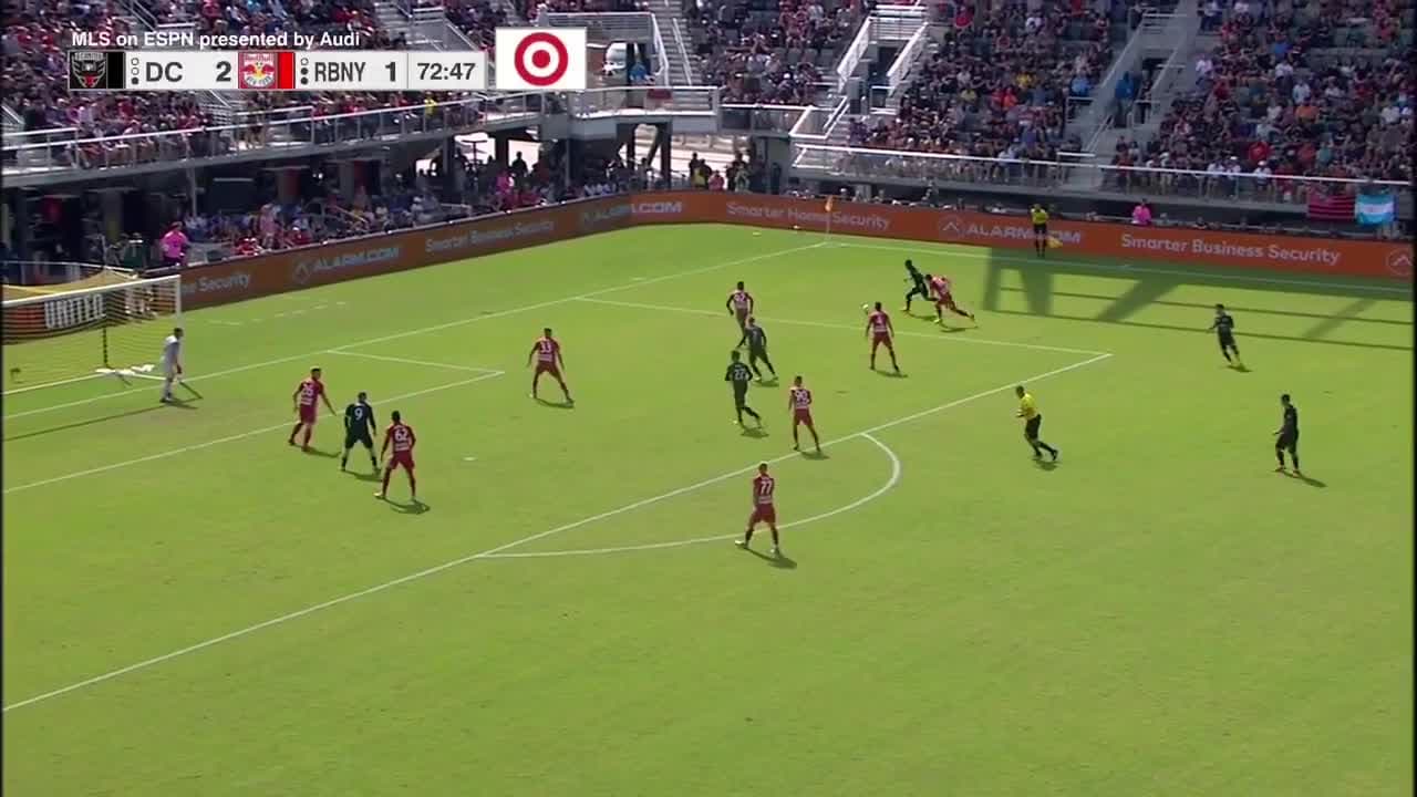 El delantero de D.C. United, Wayne Rooney, le pegó de primera intensión en el corazón del área, pero su disparo terminó estrellándose en el larguero.