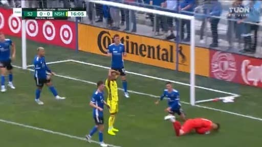 Nashville llega con peligro, le queda al '10' para definir, pero el francés alcanza a cortar, al 16'.