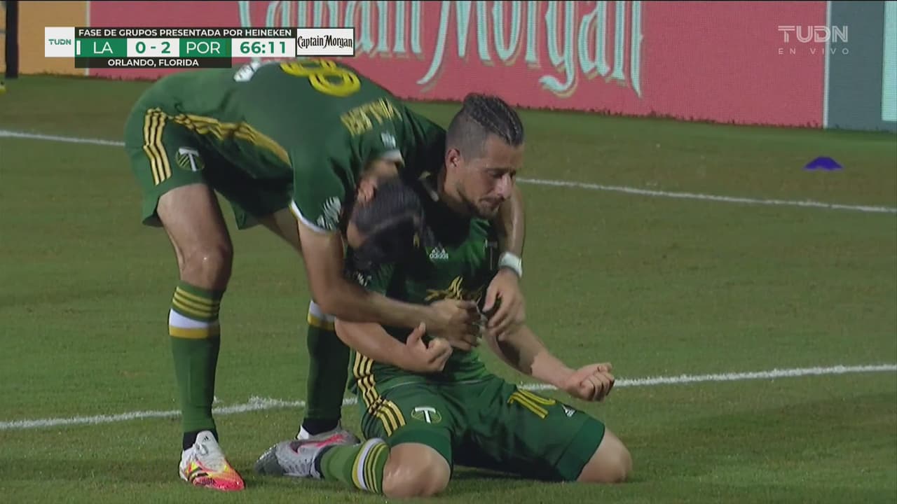 El extremo argentino del Portland Timbers se llevó a varios futbolistas y, con una pizca de suerte, el balón le quedó perfecto para romper el arco con un potente disparo.