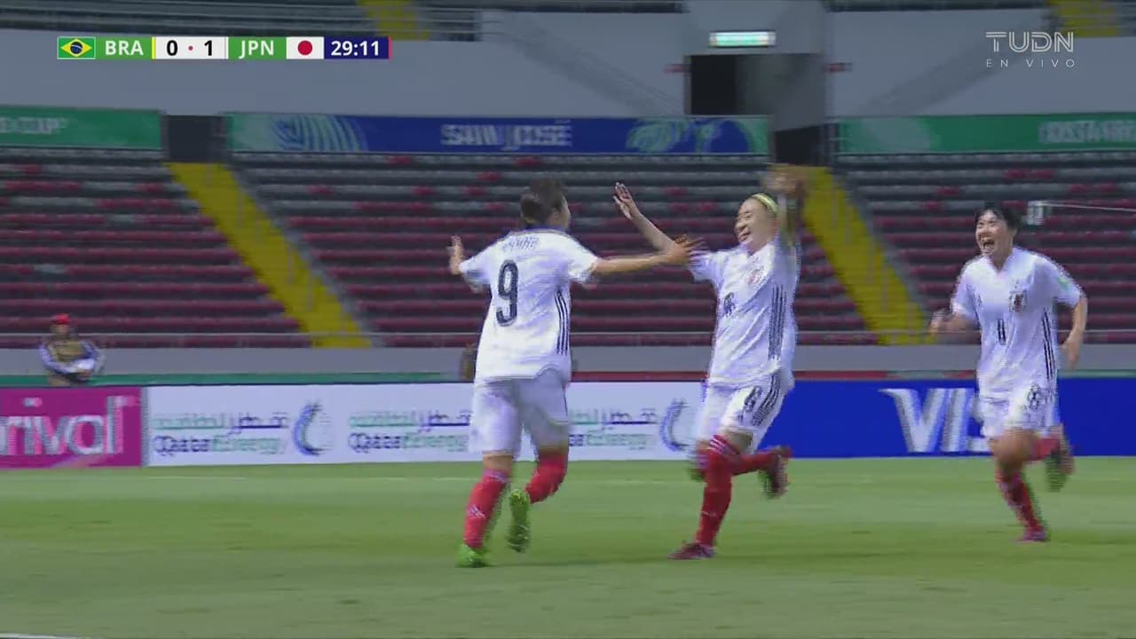 Yuzuki Yamamoto tomó ventaja para las niponas al minuto 30 con un zurdazo desde los linderos del área tras controlar con el pecho un rechazo de la zaga canarinha, controlar con el pie derecho y definir con el izquierda a ras de pasto.