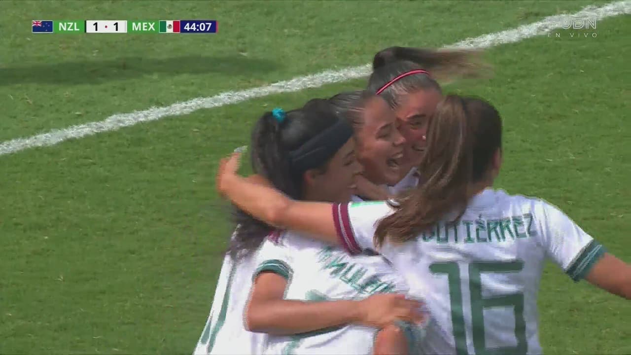 -¡Goooooooooooool de Nueva Zelanda! México tenía el control del partido, pero un error y un tanto la fortuna favorece a las neozelandezas quienes vía Wisnewski, con desvío incluido, abrió el marcador