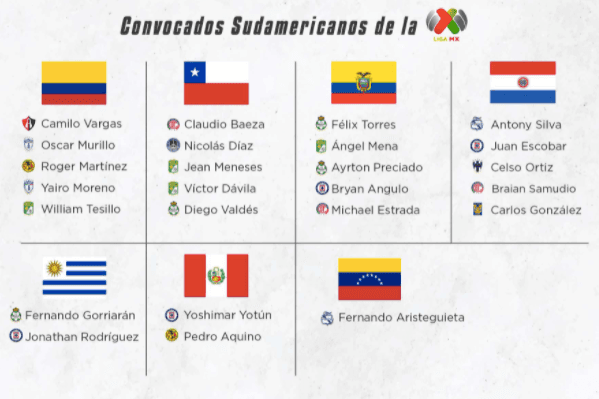 En total, son 45 jugadores que aporta la Liga BBVA MX a nueve selecciones para estas eliminatorias rumbo a Qatar 2022; México, Costa Rica, Colombia, Ecuador, Chile, Paraguay, Uruguay, Perú y Venezuela.