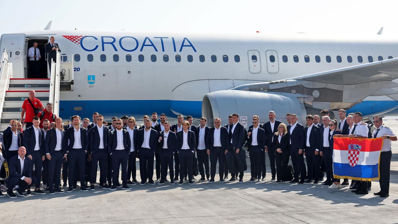 Con un traje oscuro y camisa blanca, la delegación croata arribó a suelo mundialista con Luka Modric como su figura principal.