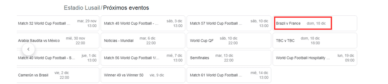 El partido Brasil vs Francia como supuesta Final del Mundial aparecía cuando se buscaba en Google el calendario del torneo o bien los eventos del Estadio Lusail, sede de la gran Final de la Copa del Mundo, y cuyos resultados eran arrojados hacia el calendario del propio buscador.