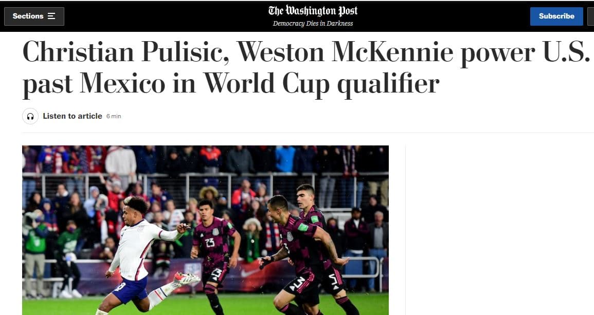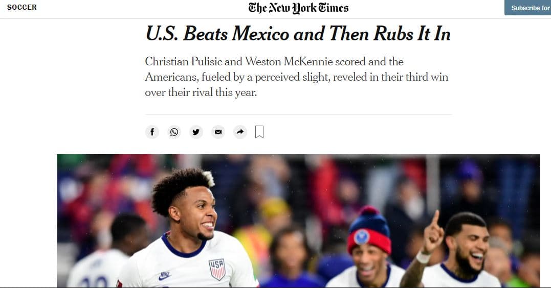 The New York Times tituló su encabezado como: "Estados Unidos vence a México y lo recalca", debido al gesto de Pulisic tras el primer gol de la escuadra de las Barras y las Estrellas.