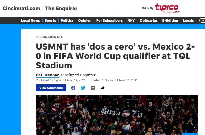 NY Times, LA Times, Washington Post, USA Today, medios locales en Ohio, entre otros, se encargaron de informar a sus usuarios lo ocurrido la noche del viernes en donde se repitió 'otro dos a cero'.