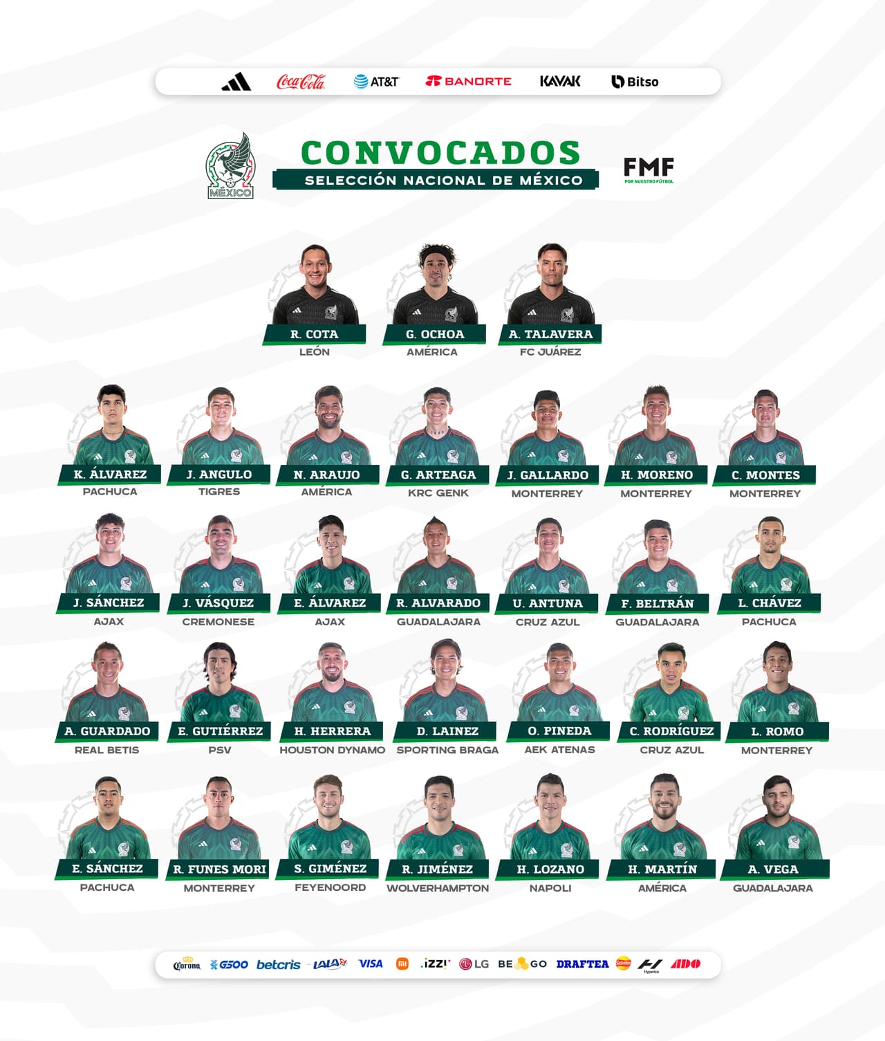 En duda están Jesús Angulo, 'Piojo' Alvarado, Fernando Beltrán, Erick Sánchez, Luis Romo, Henry Martín, Santiago Giménez, Rogelio Funes Mori y 'Tecatito' Corona.
