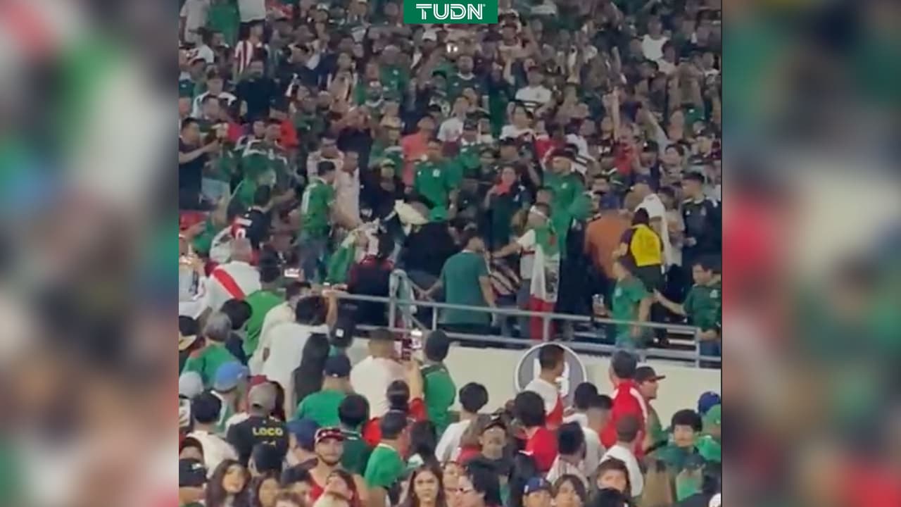 Pelea entre aficionados se registra durante el partido de México y Perú en Rose Bowl