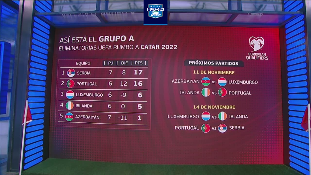 Serbia lidera el sector con 17 puntos, seguido de Portugal, con 16. Los serbios solo tienen un juego pendiente por disputar por lo que el máximo de puntos que pueden alcanzar es de 20. Los lusitanos, por su parte, tienen dos juegos pendientes y pueden llegar a 22 puntos para obtener el pase directo al Mundial.