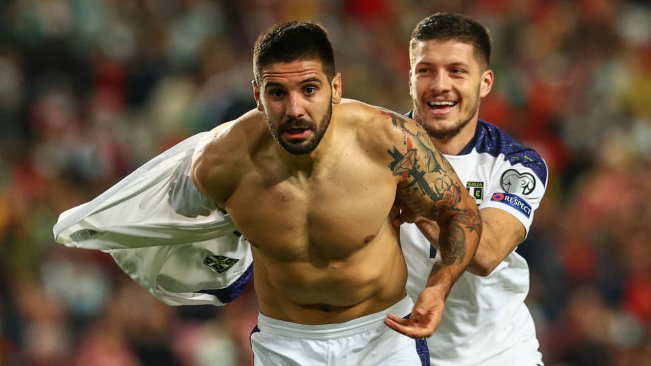El jugador serbio luego de conseguir su pase a Qatar 2022, se fue a los vestidores, pero poco tiempo después decidió salir en calzones y con la bandera de su país para celebrar con algunos aficionados que acudieron hasta Portugal a observar el encuentro.