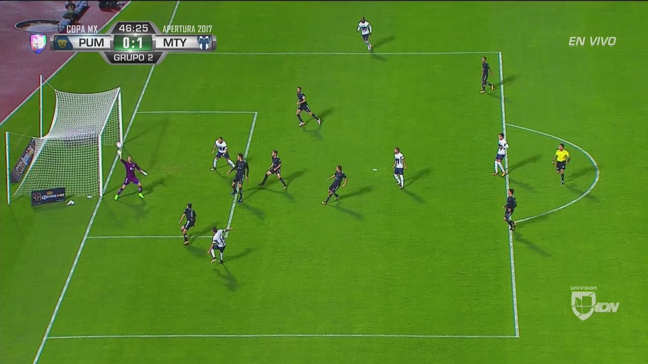 Muy cerca Pumas del empate con un cañonazo de Brian Figueroa a centímetros del arco