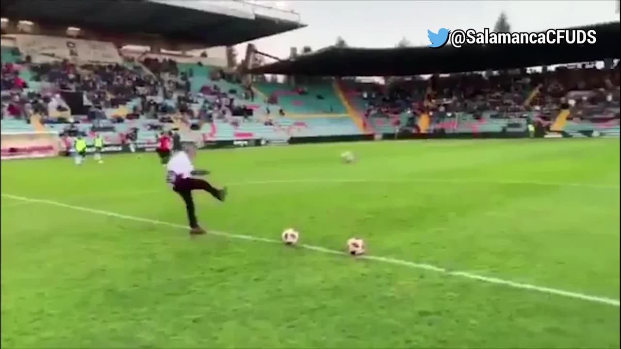 Hinchas españoles participan en un concurso durante el medio tiempo de un partido del UD Salamanca pero sufren una humillación.
