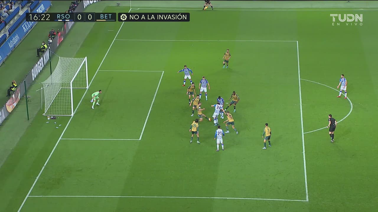 ¡No cuenta! Zubimendi la empuja a la red, pero está adelantado