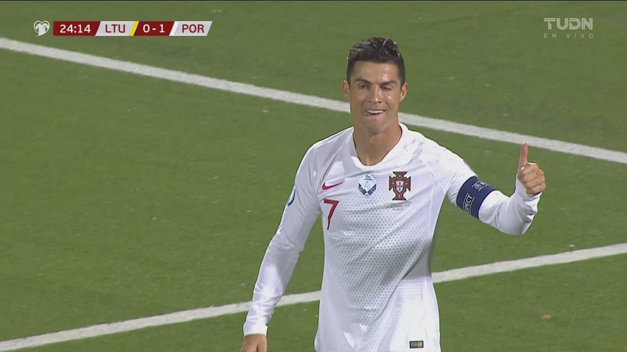 El delantero de Portugal intentó la pirueta en el juego contra Lituania del clasificatorio de la Eurocopa 2020.