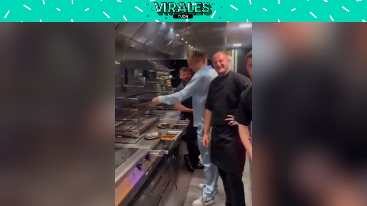El delantero del Manchester City fue captado en una cocina mientras cocinaba una carne y lo hacía con estilo, ¡y en pijama!