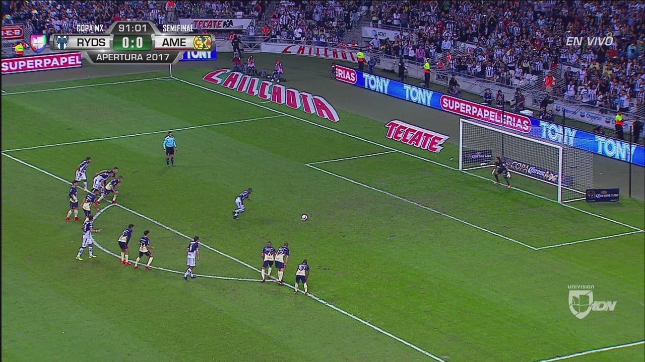 El arquero americanista adivinó el tiro del colombiano para quitarle el gol en el ultimo minuto.