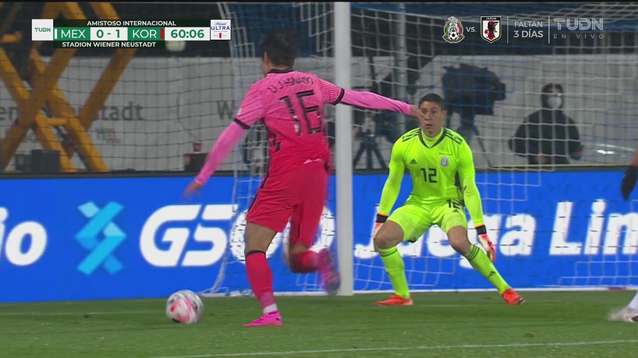 El arquero de México desvió el tiro de Hwang tras el servicio a profundidad del ariete del Tottenham al 60’.