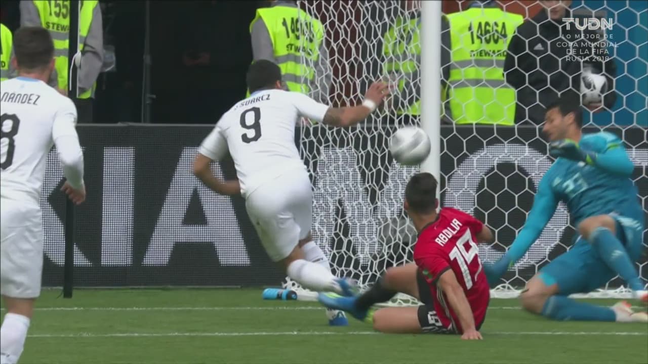 Ya en actividad de la segunda parte, Suárez rozó el gol tras un gran balón filtrado por Cavani pero su disparo se estrelló en la figura de Mohamed Elshenawy, el arquero egipcio.