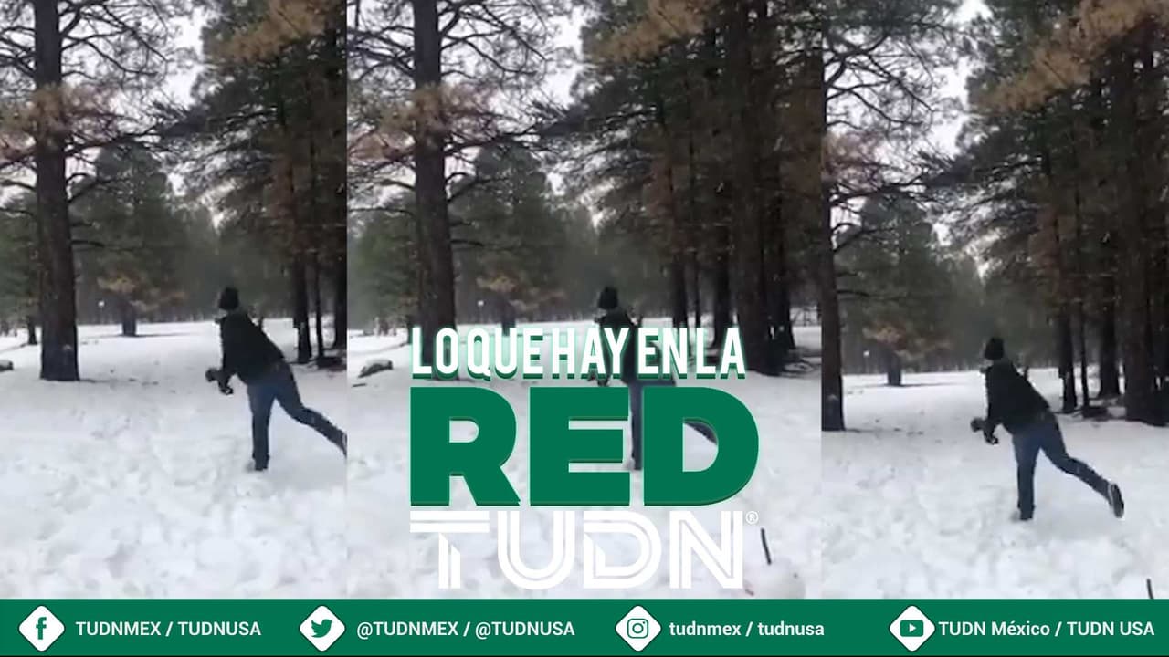 El lanzador no pierde el tiempo a pesar de las condiciones climáticas y practica con bolas de nieve.