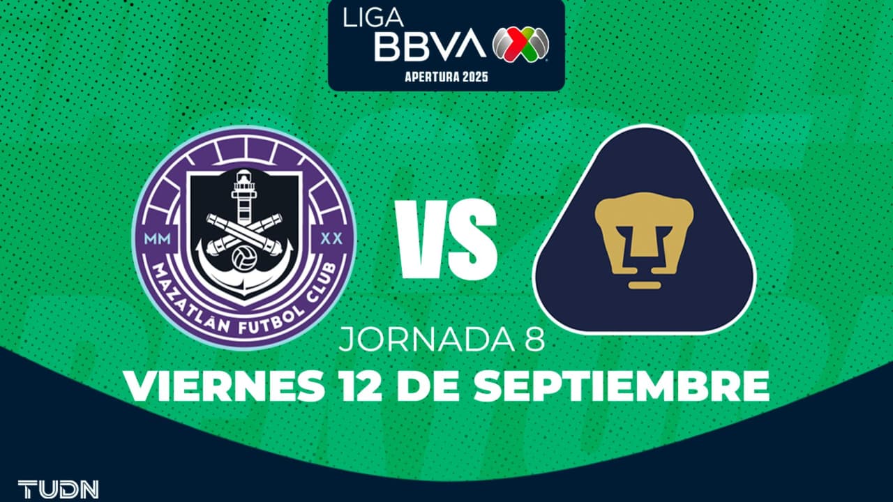 - Mazatlán vs. Pumas - El partido inicia a las 9:00 pm tiempo del centro de México. Mientras en los Estados Unidos a las 11:00 pm ET, a la 10:00 pm CT y a las 8:00 pm PT. El juego lo podrás ver en México por TUDN, mientras en los Estados Unidos por TUDN, ViX, tudn.com y app de TUDN.