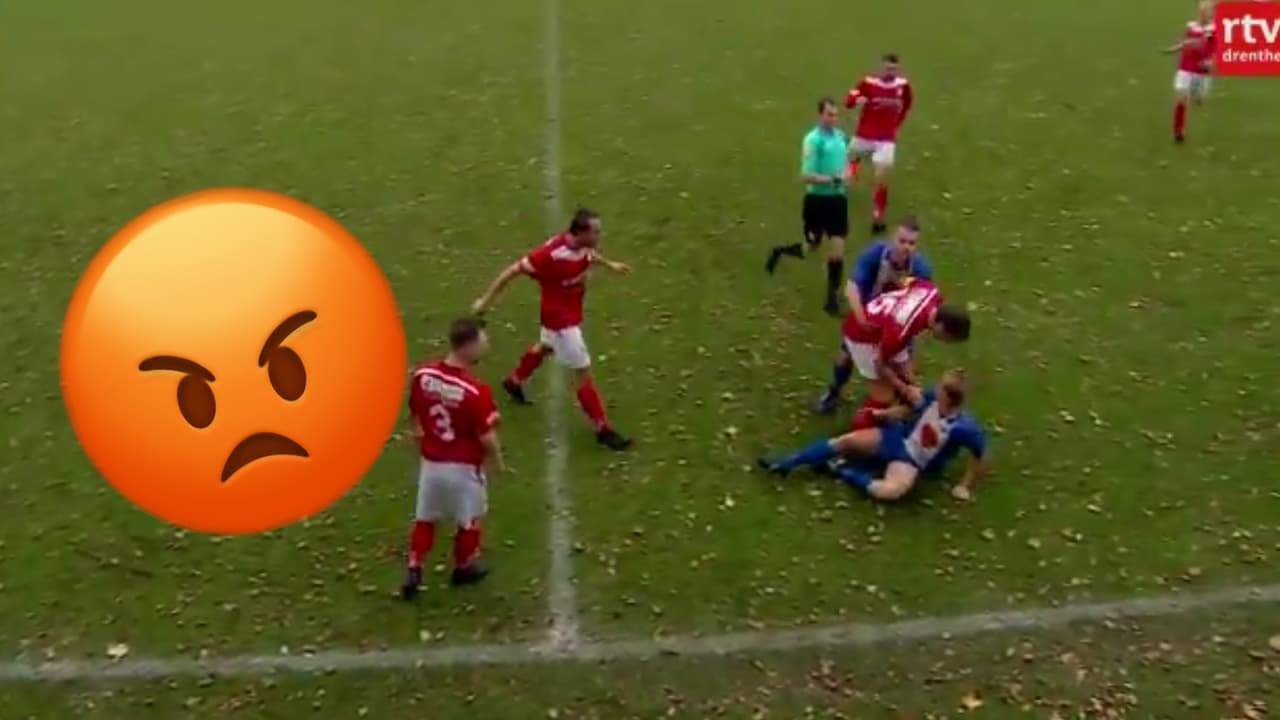 Patada de cárcel: le meten tremendo planchazo y para colmo le dan un pelotazo en la cabeza