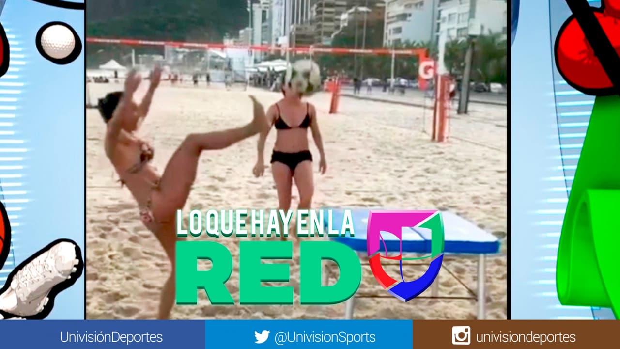 Con la tranquilidad de un profesional, sobre la arena, estas cuatro cracks se lucen pasándose la pelota entre sí. El juego consiste en rebotar el balón en una pequeña mesa y luego pasarlo a sus contrincantes.