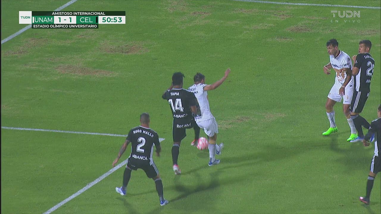 El defensa del Celta derribó al ‘Toto’, pero el árbitro no decretó la pena máxima para Pumas.