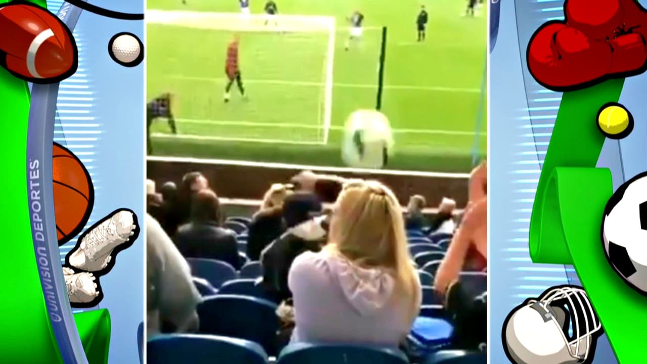 La mujer, quien se encontraba detrás de una de las porterías, se distrajo por un instante cuando de repente el balón, que fue disparado por un jugador, le pegó con fuerza en la cabeza. Aquí el momento.